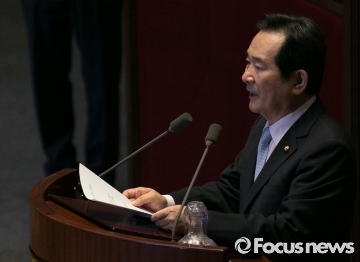 (서울=포커스뉴스) 9일 오후 서울 여의도 국회에서 열린 20대 국회 첫 본회의에서 전반기 국회의장으로 선출된 정세균 더불어민주당 의원이 수락 연설을 하고 있다.