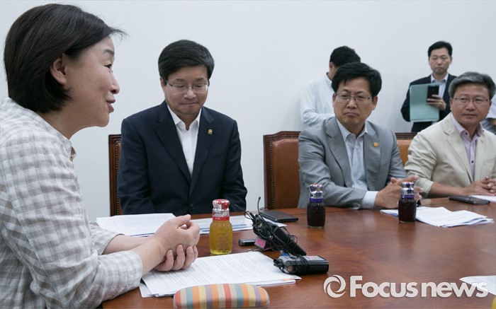 (서울=포커스뉴스) 심상정 정의당 상임대표가 10일 오후 서울 여의도 국회에서 지방재정법 시행령과 관련 경기도 기초단체장들과 만나 간담회를 하고 있다. 이날 간담회에는 염태영 수원시장, 채인석 화성시장, 최성 고양시장 등이 참석했다.