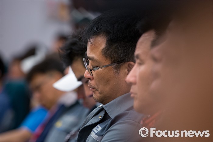 (서울=포커스뉴스) 조선산업 노동자들이 9일 오전 서울 여의도 국회도서관 강당에서 열린 '위기의 조선산업 및 노동자 구조조정 해법 모색 대토론회'에 참석 하고 있다.