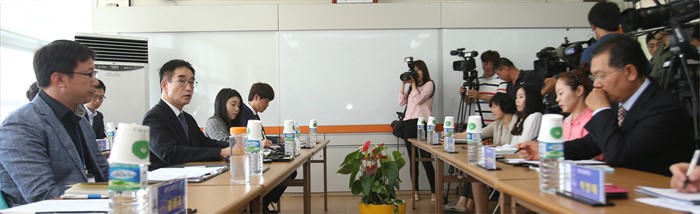 (서울=포커스뉴스) 이준식 사회부총리 겸 교육부 장관이 9일 전남 신안군 임자초등학교에서 열린 도서지역 근무자와의 간담회에서 모두발언을 하고 있다. <사진제공=교육부>