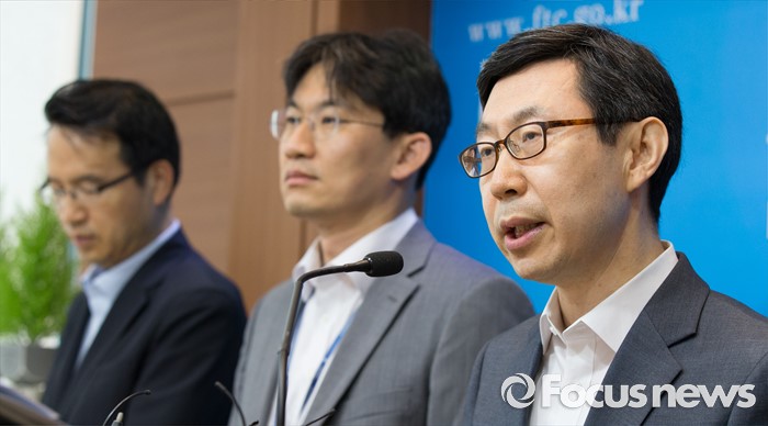 (세종=포커스뉴스) 신영선 공정거래위원회 사무처장이 8일 오전 세종시 정부세종청사 공정위 기자실에서 대기업집단 지정제도 개선방안에 대한 브리핑을 하고 있다. 오른쪽부터 신영선 사무총장, 이병원 기획재정부 기업환경과장, 박춘호 기획재정부 법인세제과장.