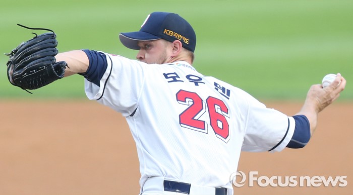 (서울=포커스뉴스) 10일 서울 잠실구장에서 열린 2016프로야구 롯데-두산 경기에서 1회초 두산 선발투수 보우덴이 투구하고 있다.