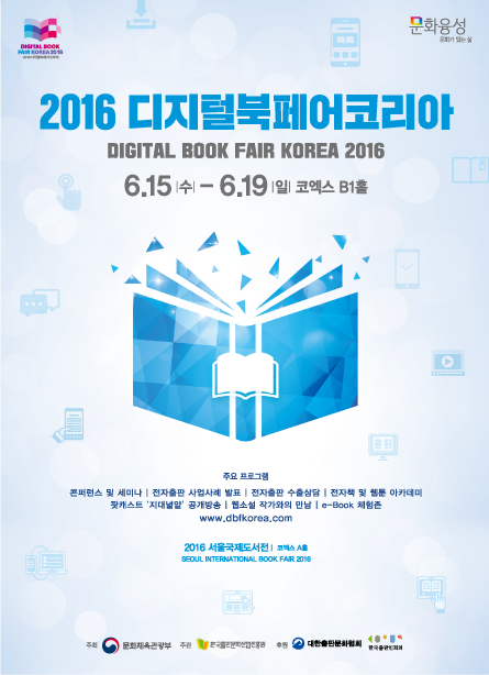 '2016 디지털북페어코리아'는 문체부가 주최하고 한국출판문화산업진흥원이 주관하는 국내 최대 전자출판 전문 전시회다. 오는 15일부터 19일까지 5일간 코엑스 B 1홀에서 개최된다.
