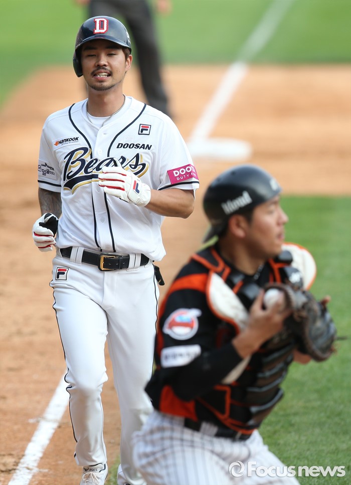 (서울=포커스뉴스) 12일 서울 잠실구장에서 열린 2016 프로야구 롯데-두산 경기 4회말 무사 만루에서 두산 류지혁의 투수 앞 땅볼때 3루주자 오재원이 홈에서 포스아웃되고 있다.