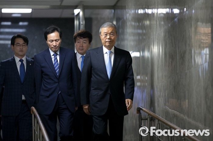 (서울=포커스뉴스) 13일 오전 서울 여의도 국회에서 열린 더불어민주당 비공개 의원총회에 김종인 비대위 대표, 우상호 원내대표가 입장하고 있다.