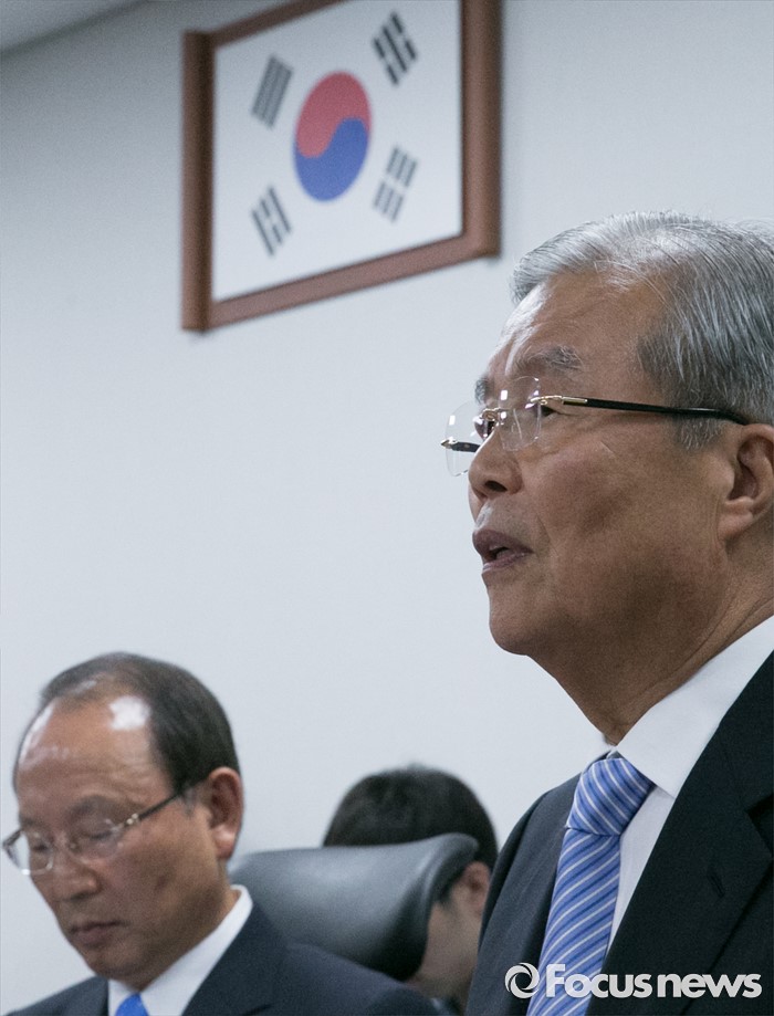 (서울=포커스뉴스) 김종인(오른쪽) 더불어민주당 비대위 대표가 13일 오전 서울 여의도 국회 의원회관에서 열린 '경제민주화란 무엇인가?' 간담회에 참석해 인사말을 하고 있다.