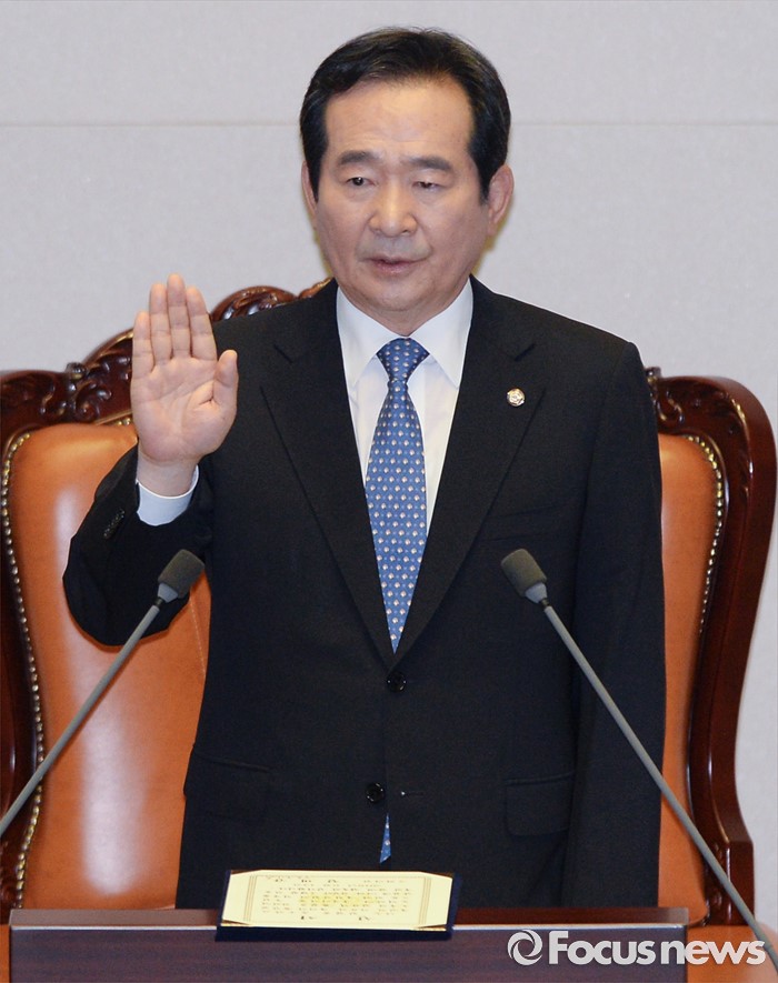 (서울=포커스뉴스) 정세균 국회의장이 13일 오전 서울 여의도 국회에서 열린 20대 국회 개원식에 참석해 선서를 하고 있다.