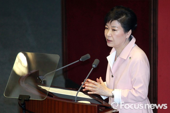 (서울=포커스뉴스) 박근혜 대통령이 13일 오전 서울 여의도 국회에서 열린 20대 국회 개원식에 참석해 연설을 하고 있다.