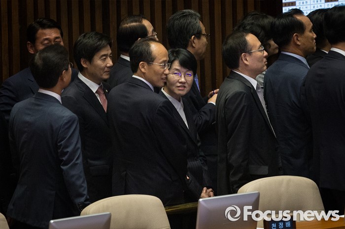 (서울=포커스뉴스) 13일 오후 서울 여의도 국회에서 상임위원장 선출을 위해 열린 343회 국회(임시회) 2차 본회의에 참석한 박선숙(앞줄 왼쪽 네번째) 국민의당 의원이 투표를 하기 위해 의원들과 함께 줄을 서고 있다.