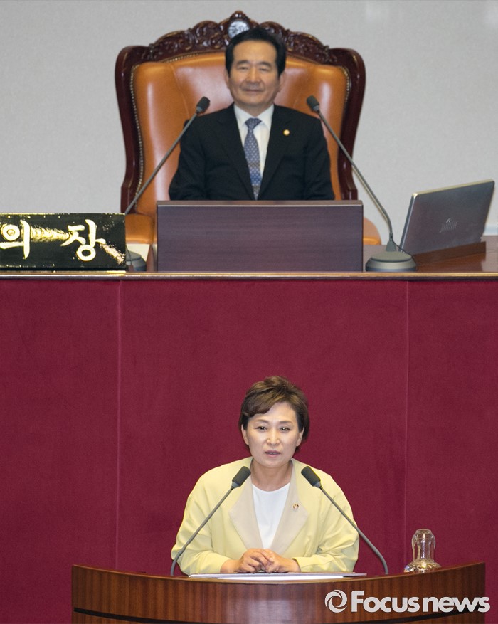 (서울=포커스뉴스) 13일 오후 서울 여의도 국회에서 열린 343회 국회(임시회) 2차 본회의에 참석한 김현미 신임 예산결산특별위원장이 당선 인사를 하고 있다.