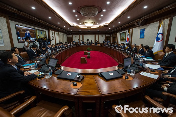 (서울=포커스뉴스) 14일 오전 서울 종로구 정부서울청사에서 서울-세종 화상 국무회의가 열리고 있다.