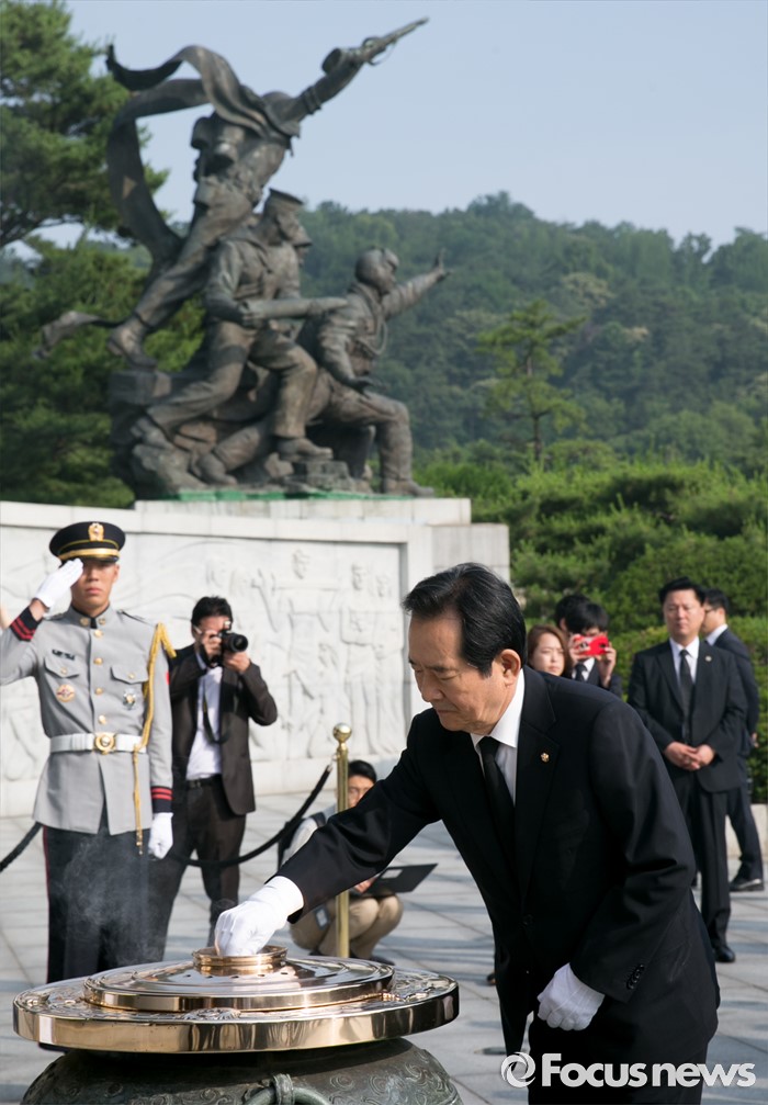 (서울=포커스뉴스) 정세균 국회의장이 14일 오전 동작구 국립서울현충원을 방문해 참배를 하고 있다.