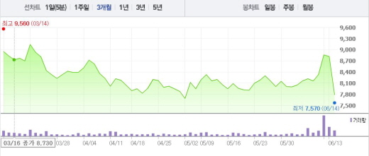 앞서 레드로버는 "신규사업투자를 위해 약 521억원 규모의 주주배정 유상증자를 시행한다"고 공시했다. 증자를 통해 조달된 자금은 VR 기술투자 및 컨텐츠 개발, 신규 애니메이션 프로젝트 투자, 시스템 설비 투자 등에 쓰일 예정이다.주가흐름<사진출처=네이버 캡쳐>