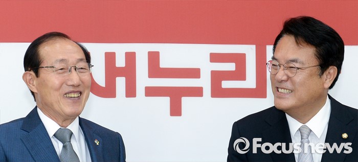 (서울=포커스뉴스) 정진석(오른쪽) 새누리당 원내대표가 14일 오전 서울 여의도 국회를 방문한 이원종 대통령비서실장과 면담을 하고 있다.