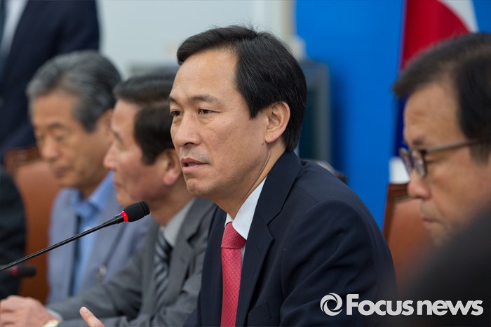 (서울=포커스뉴스) 우상호 더불어민주당 원내대표가 14일 오전 서울 여의도 국회에서 열린 '개성공단기업협회 면담'에 앞서 모두발언 하고 있다.