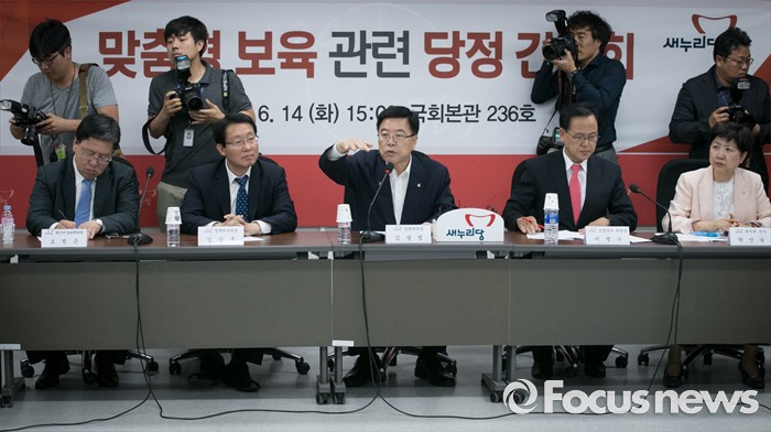 (서울=포커스뉴스) 14일 오후 서울 여의도 국회에서 열린 맞춤형 보육 관련 당정 간담회에 참석한 김광림(오른쪽 세번째) 새누리당 정책위의장이 모두발언을 하고 있다.