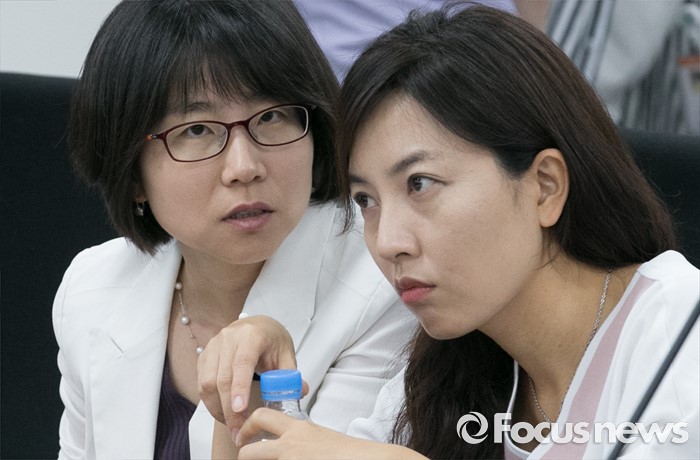 (서울=포커스뉴스) 14일 오후 서울 여의도 국회에서 열린 맞춤형 보육 관련 당정간담회에 참석한 민세진(왼쪽), 임윤선 새누리당 혁신비대위원이 대화하고 있다.