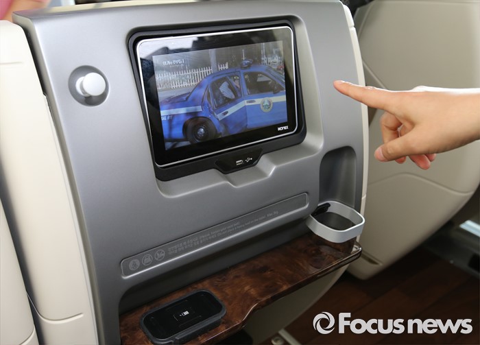 (세종=포커스뉴스) 프리미엄 고속버스 도입에 앞서 시승행사가 14일 오전 세종시 정부세종청사 제2주차장에서 열렸다. 사진은 기아자동차 뉴 그랜버드 프리미엄 골드 익스프레스 내부모습.