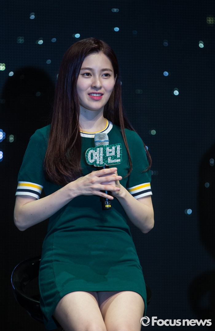 (서울=포커스뉴스) 14일 오후 서울 마포구 롯데카드 아트센터에서 열린 걸그룹 다이아의 두번째 앨범 'HAPPY ENDING' 발표 쇼케이스에 참여한 멤버 예빈이 인사말을 하고 있다.
