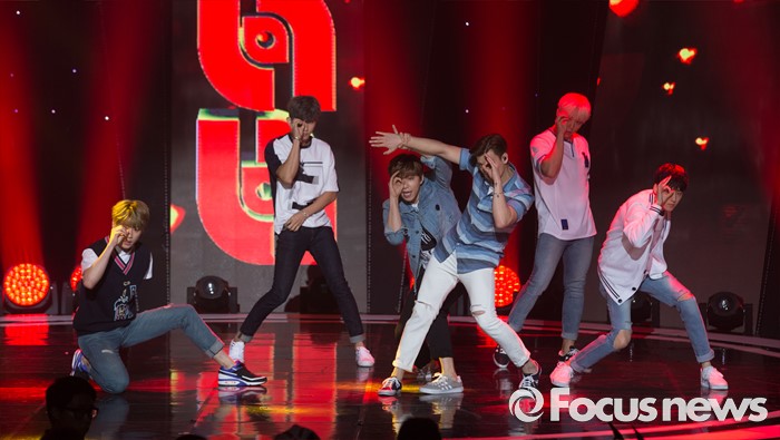 (서울=포커스뉴스) 14일 오후 서울 마포구 SBS프리즘 타워에서 열린 SBS MTV '더쇼' 생방송 현장에 참여한 아이돌그룹 유키스의 멤버들이 무대를 선보이고 있다.
