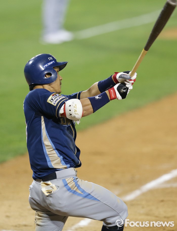 (서울=포커스뉴스) 14일 서울 잠실구장에서 열린 2016 프로야구 NC-LG 경기 9회초 무사 만루에서 NC 이종욱이 2타점 중전 안타를 치고 있다.