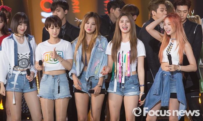 (서울=포커스뉴스) 14일 오후 서울 마포구 SBS프리즘 타워에서 열린 SBS MTV '더쇼' 생방송 현장에 참여한 걸그룹 EXID의 멤버들이 미소를 짓고 있다.