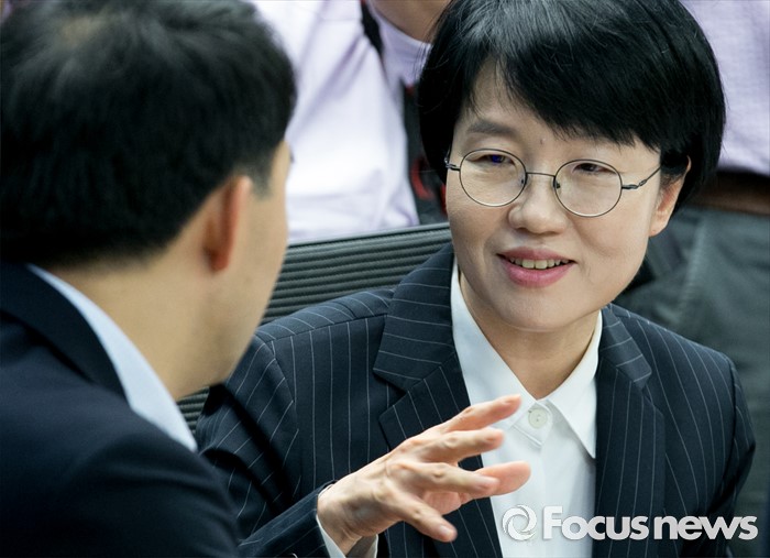 (서울=포커스뉴스) 15일 오전 서울 여의도 국회 의원회관에서 열린 15차 국민의당 정책역량강화 집중 워크숍에 참석한 박선숙(오른쪽) 의원이 동료 의원들과 대화하고 있다.