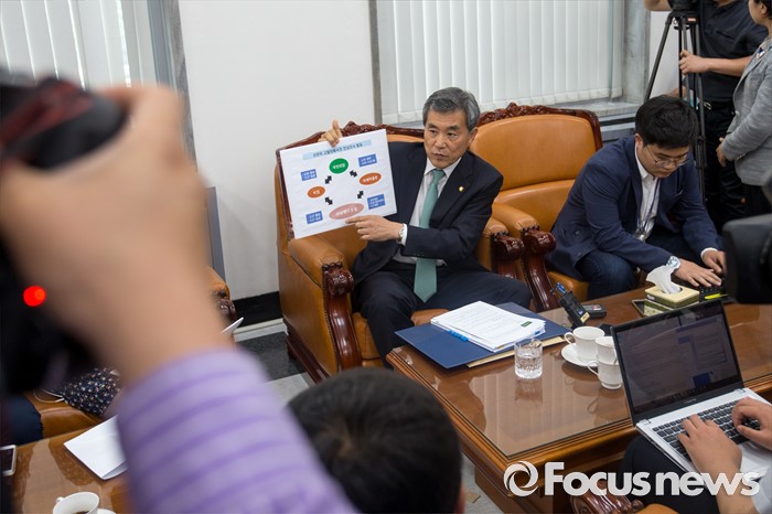 (서울=포커스뉴스) 김수민 의원 공천헌금 리베이트 관련 자체 진상조사단장인 이상돈 국민의당 최고위원이 15일 오전 서울 여의도 국회에서 리베이트 사건과 관련 중간조사 결과를 발표 하고 있다.