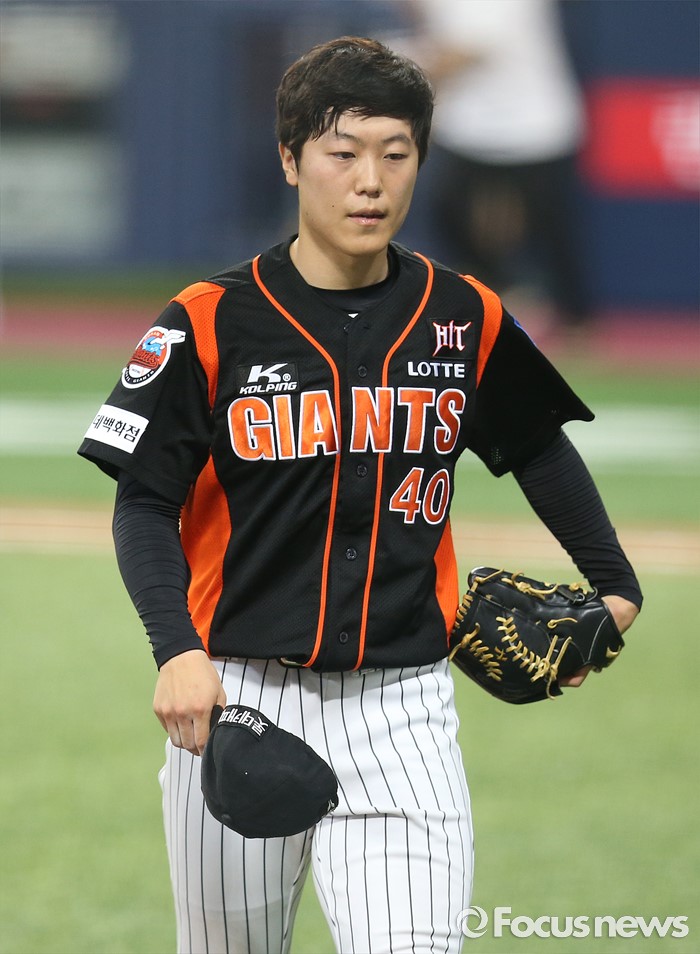 (서울=포커스뉴스) 15일 서울 고척 스카이돔 구장에서 열린 2016 프로야구 롯데-넥센 경기에서 롯데 투수 박진형이 3회말 1사 만루의 실점 위기를 넘기고 불펜으로 들어가고 있다.