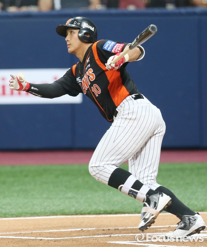 (서울=포커스뉴스) 15일 서울 고척 스카이돔 구장에서 열린 2016 프로야구 롯데-넥센 경기 1회초 1사 2루에서 롯데 황재균이 선취 득점을 올리는 좌중간 2루타를 날리고 있다.