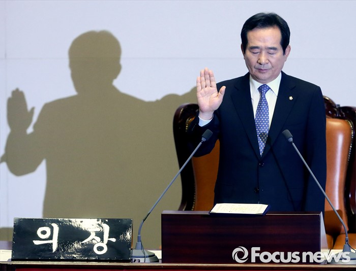 감사합니다.정세균 국회의장이 13일 오전 서울 여의도 국회에서 열린 20대 국회 개원식에 참석해 선서를 하고 있다. 2016.06.13 사진공동취재단