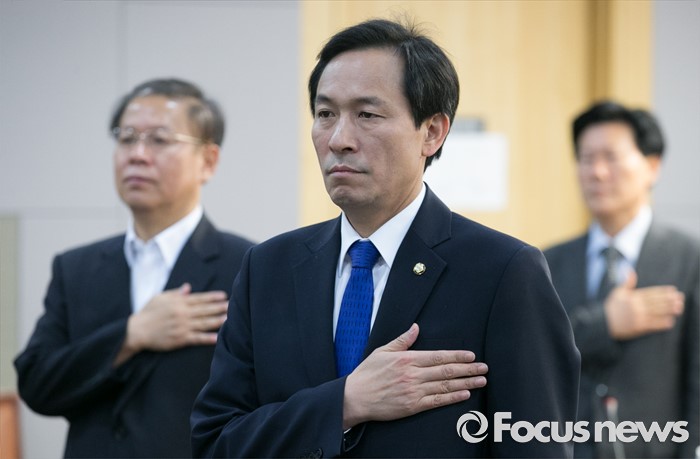 | △ 국민의례하는 우상호 |
