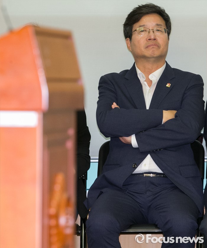 (서울=포커스뉴스) 16일 오전 서울 여의도 국회 의원회관에서 열린 지방재정 개편안 무엇이 문제인가? 긴급 좌담회에 참석한 염태영 수원시장이 의원들의 축사를 듣고 있다.