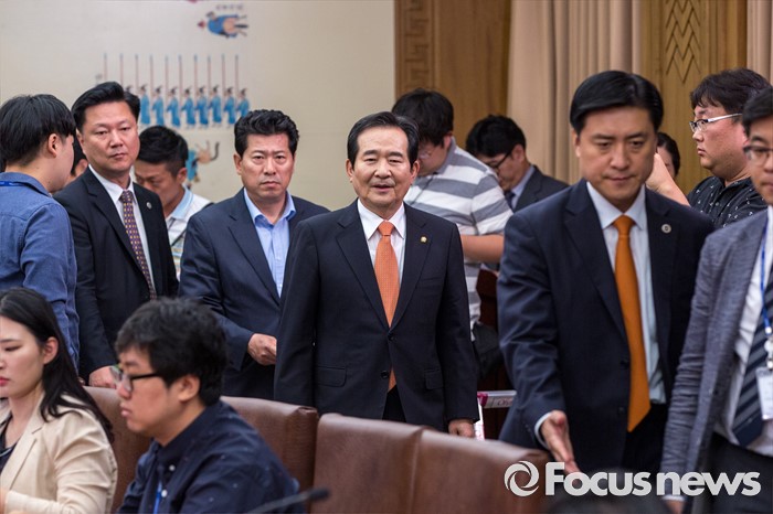 (서울=포커스뉴스) 정세균 국회의장이 16일 오전 서울 여의도 국회에서 열린 취임 기자간담회에 참석하기 위해 간담회장으로 이동하고 있다.