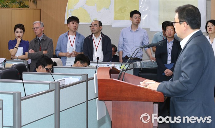 (세종=포커스뉴스) 김현태 세월호 선체인양추진단 부단장이 16일 오후 세종시 정부세종청사 해양수산부 기자실에서 세월호 선체인양에 대한 브리핑을 하고 있다.