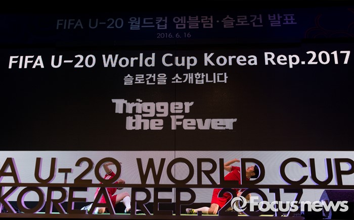 (서울=포커스뉴스) 16일 오후 서울 종로구 올레스퀘어에서 FIFA U-20 월드컵 엠블럼·슬로건이 발표되고 있다.