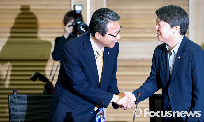 (서울=포커스뉴스) 16일 오후 서울 여의도 국회 의원회관에서 열린 '누리과정 갈등 어떻게 풀 것인가' 토론회에 참석한 안철수(오른쪽) 국민의당 상임공동대표와 김성식 정책위의장이 인사하고 있다.