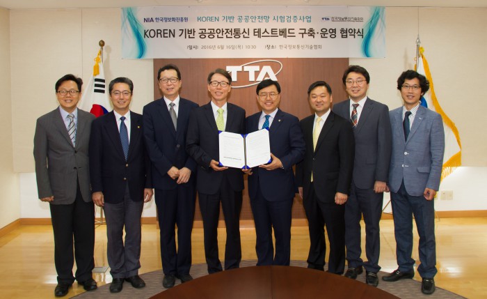 NIA는 16일 한국정보통신기술협회(TTA)와 KOREN 기반 공공안전망 시험검증 사업 수행을 위한 협약을 체결했다. KOREN은 NIA에서 운영하는 비영리 선도시험망으로, 상용망에 적용하기 어려운 네트워크 기술에 대한 시험·검증을 통해 중소기업과 벤처의 기술개발 및 상용화를 지원하고 있다.