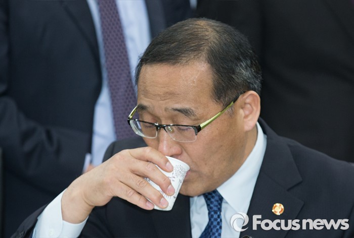 한편 정부의 지방재정개편 계획이 시행되면 수원, 성남, 용인 등 경기도 6개 지역에 대한 예산이 줄게 된다. 이들 지역의 지자체장은 모두 더민주 소속이다.19일 오후 세종시 정부세종청사 기획재정부 대회의실에서 열린 2016년 시도지사협의회에 참석한 홍윤식 행정자치부장관이 목을 축이고 있다.2016.04.19 김기태 기자