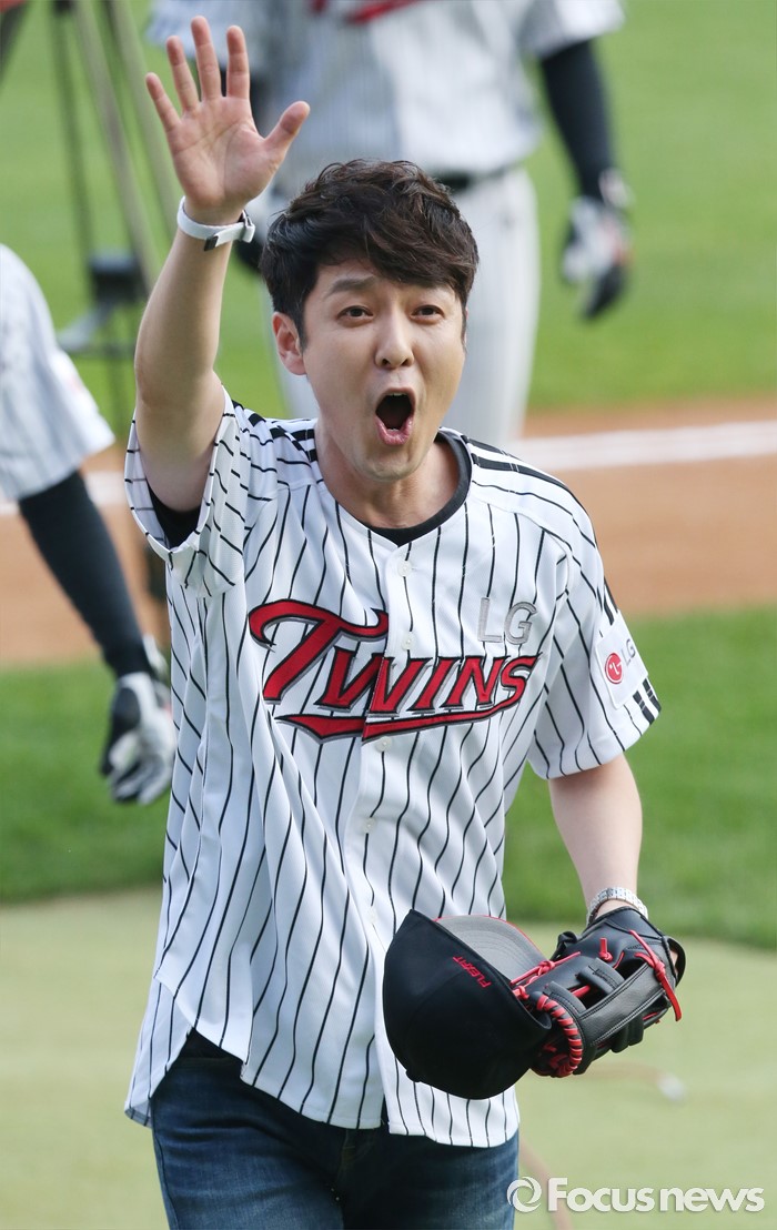 (서울=포커스뉴스) 16일 서울 잠실구장에서 열린 2016 프로야구 NC-LG 경기에서 시구자로 나온 스윗소로우의 가수 인호잔이 시구를 마치고 팬의 환호에 손을 흔들며 답하고 있다.
