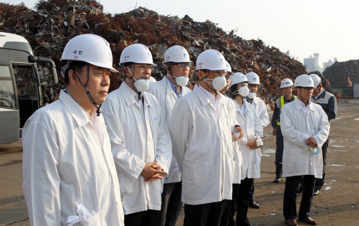 (인천=포커스뉴스) 김용환 원자력안전위원회 위원장이 16일 인천시 현대제철 인천사업소를 방문해 재활용고철 방사선감시기 운영 현장을 시찰하고 있다. <사진제공=원자력안전위원회>