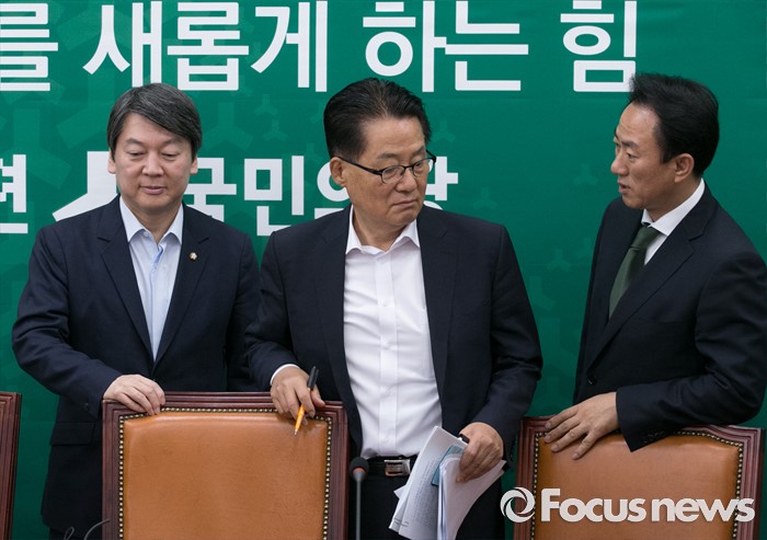 (서울=포커스뉴스) 17일 오전 서울 여의도 국회에서 열린 국민의당 최고위원회의에 안철수(왼쪽부터) 상임공동대표, 박지원 원내대표, 김명진 원내대표비서실장이 참석하고 있다.