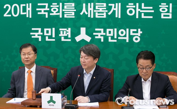 (서울=포커스뉴스) 17일 오전 서울 여의도 국회에서 열린 국민의당 최고위원회의에 참석한 안철수(가운데) 상임공동대표가 개의 선언을 하고 있다.