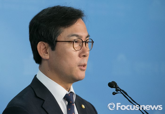 (서울=포커스뉴스) 김영우 새누리당 혁신비대위원이 17일 오전 서울 여의도 국회 정론관에서 전날 비대위 회의에서 논의된 탈당파 의원 일괄복당 결정과 관련 브리핑을 하고 있다.