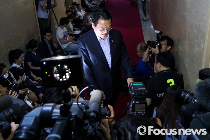 (서울=포커스뉴스) 정진석 새누리당 원내대표가 17일 오후 서울 여의도 국회에서 정세균 국회의장을 비롯한 야당 원내대표들과 회동을 하기 위해 국회의장실로 들어서고 있다.