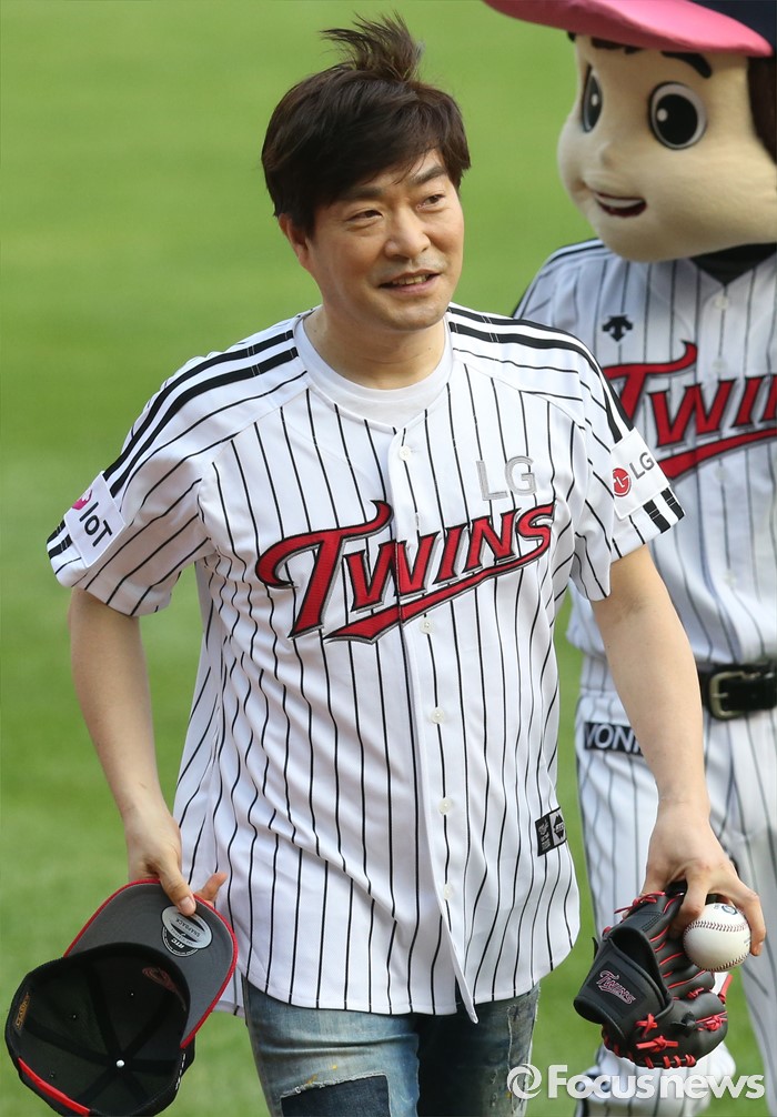 (서울=포커스뉴스) 17일 서울 잠실구장에서 열린 2016 프로야구 KIA-LG 경기에 앞서 배우 손현주가 시구를 마치고 마운드를 내려오고 있다.