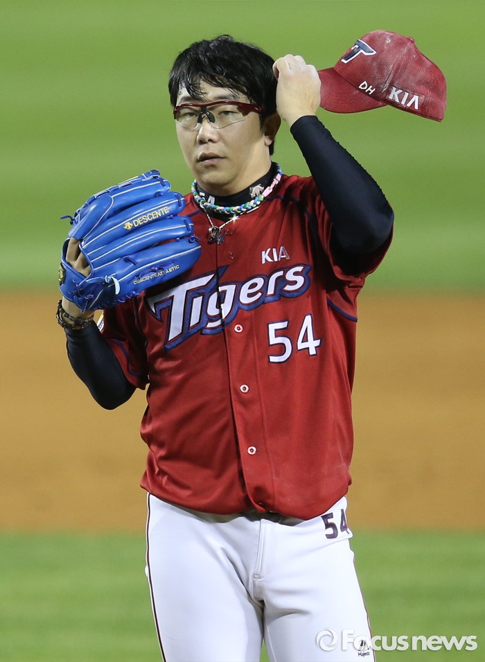 (서울=포커스뉴스) 17일 서울 잠실구장에서 열린 2016 프로야구 KIA-LG 경기에서 KIA 투수 양현종이 5회말 2사 1루에서 LG 문선재에게 볼넷을 허용하고 아쉬워하고 있다.