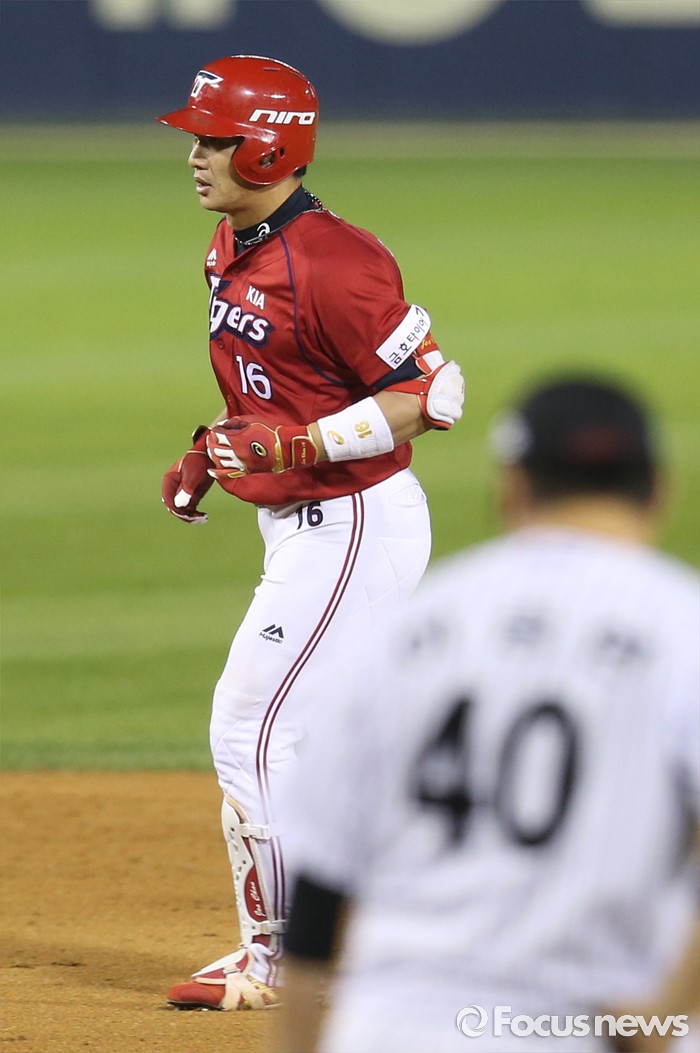 (서울=포커스뉴스) 17일 서울 잠실구장에서 열린 2016 프로야구 KIA-LG 경기 8회초 KIA 선두타자 김주찬이 우월 솔로 홈런을 치고 베이스를 돌고 있다.