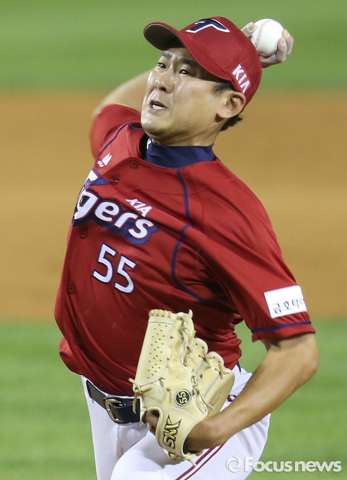 (서울=포커스뉴스) 17일 서울 잠실구장에서 열린 2016 프로야구 KIA-LG 경기 8회말 무사 1루에서 KIA 투수 김광수가 선발 양현종을 구원등판해 투구하고 있다.