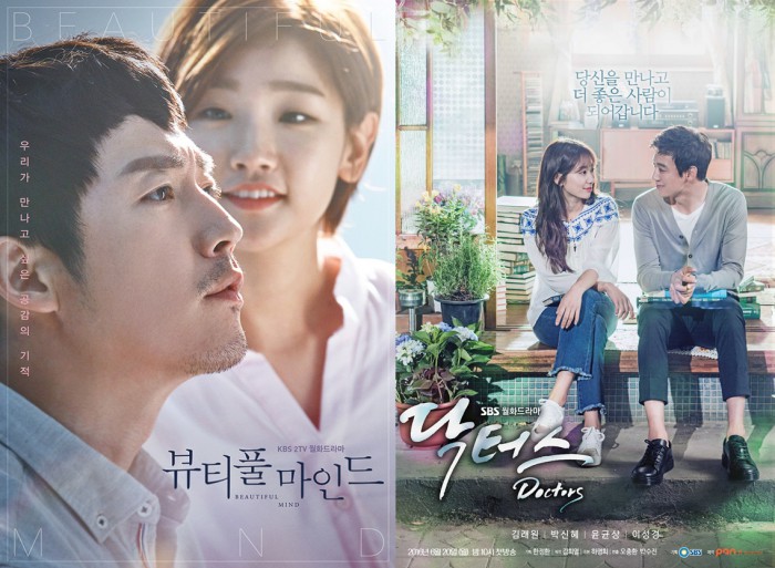 드라마 '상류사회', '따뜻한 말 한마디', '우리가 결혼할 수 있을까' 등을 집필한 하명희 작가가 극본을 썼다. 김래원·박신혜 외에도 이성경, 윤균상, 김영애 등이 출연한다.KBS 드라마 '뷰티풀 마인드' 포스터(왼쪽)과 SBS 드라마 '닥터스' 포스터 <사진제공=래몽래인·팬엔터테인먼트(각각)>장혁의 드라마 '뷰티풀 마인드' 포스터 <사진제공=래몽래인>드라마 '닥터스' 포스터 <사진제공=팬엔터테인먼트>